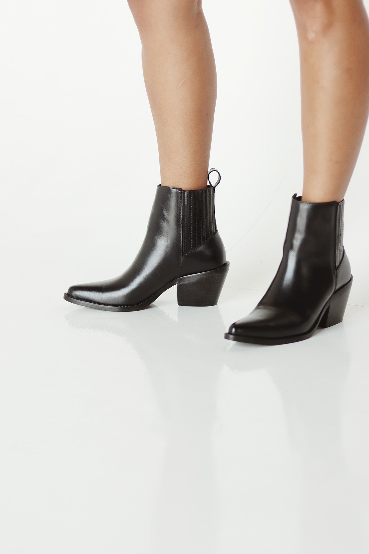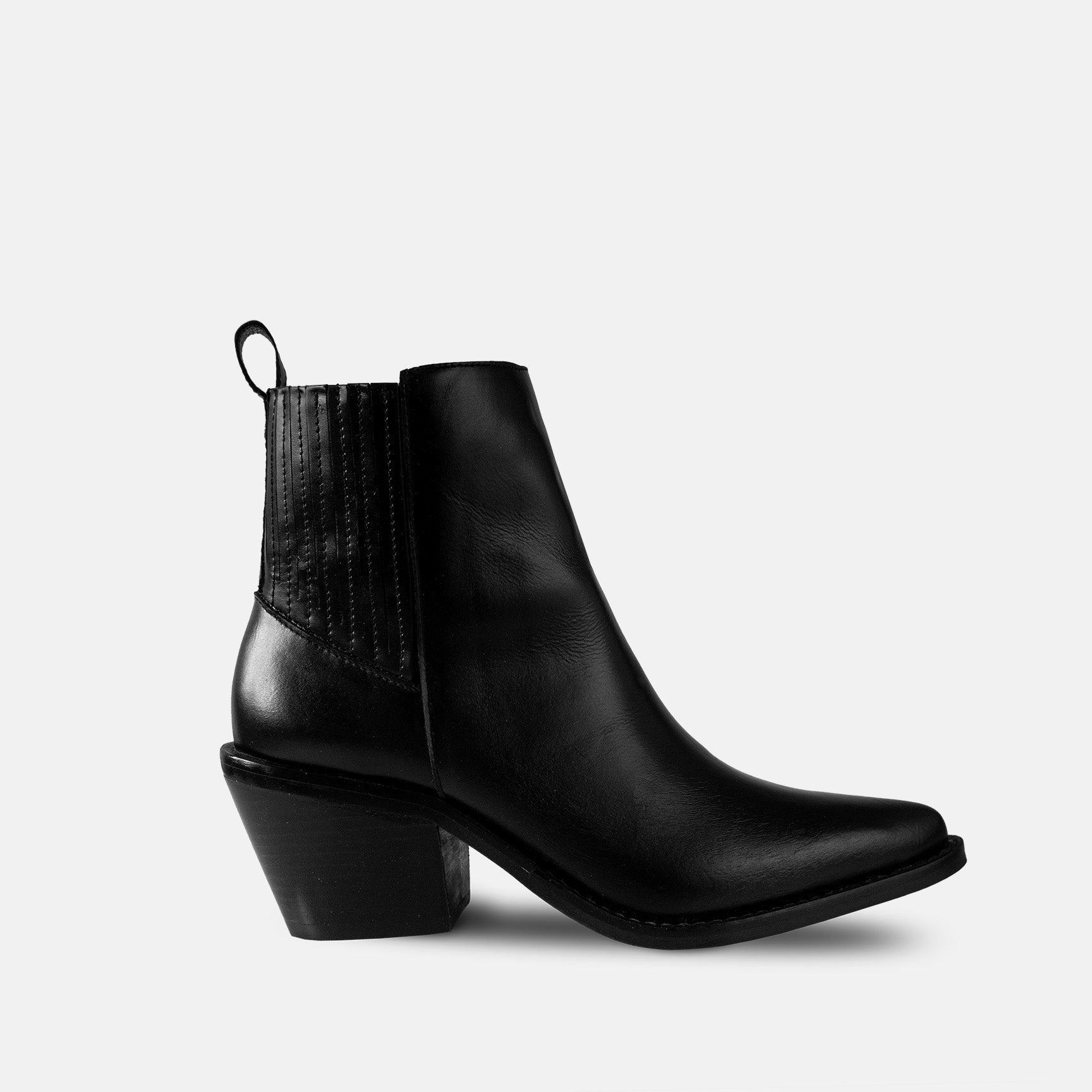 Meet: Legacy Black, un clásico re-imaginado. Botines con una silueta moderna y elegante, pero a la vez clásica vaquera. Hechas en piel negra con paneles laterales elásticos. Bold, yet timeless - like you. La pieza más versátil de nuestra colección, ideales para cualquier temporada. Disponibles también en TAUPE (Café).